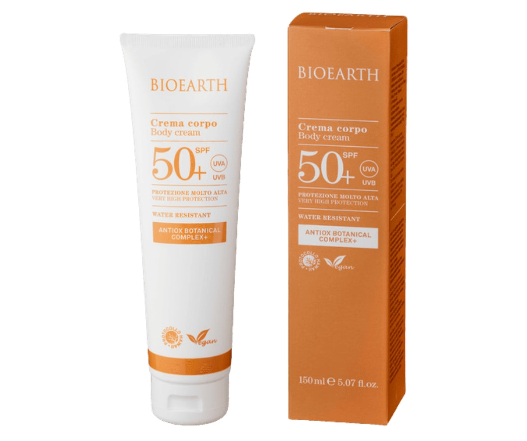 La Crema solare corpo SPF 50+ con Antiox Botanical Complex+ di Bioearth è una protezione solare ad alta efficacia, pensata per difendere la pelle dai raggi UVA e UVB. Grazie al suo filtro solare a base chimico-fisica, protegge in modo efficace senza ungere o appesantire, rendendola adatta anche alle pelli sensibili e a quelle già esposte al sole.