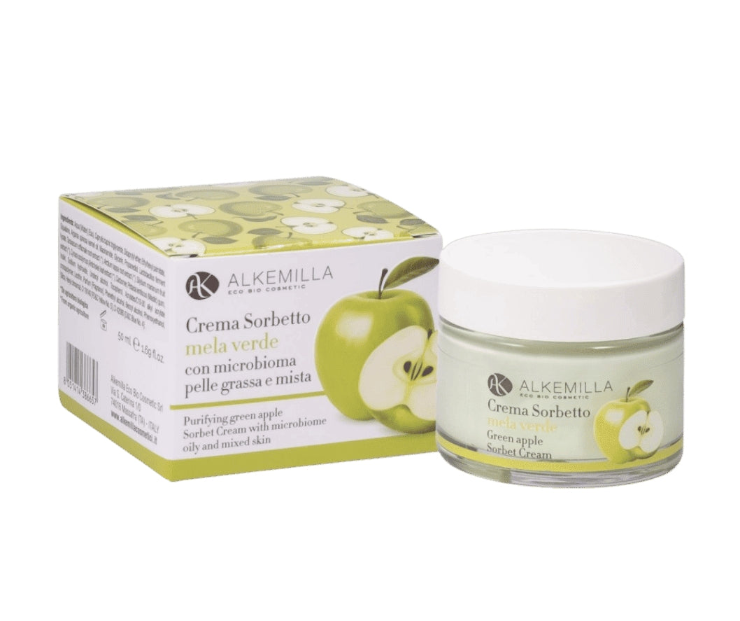La Crema sorbetto alla mela verde di Alkemilla è un trattamento viso innovativo che combina una texture ultra leggera e rinfrescante con un’elevata efficacia purificante. Ideale per le pelli miste, impure e con pori dilatati, aiuta a regolare la produzione di sebo, minimizzare i pori e donare uniformità all’incarnato.