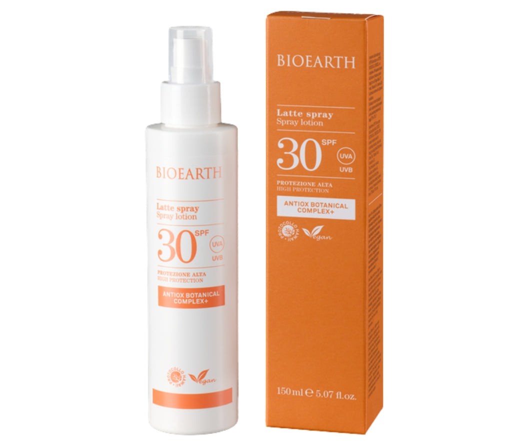 Il Latte solare spray SPF 30 con Antiox Botanical Complex+ di Bioearth è un trattamento solare dalla texture leggera e facile da applicare, ideale per proteggere la pelle dai raggi UVA e UVB. Arricchito con Antiox Botanical Complex+, un complesso 100% naturale a base di vitamine, piante e funghi come il fungo Reishi, il tè verde, la vitamina E e il coenzima Q10, questo latte solare svolge un'azione antiossidante, lenitiva e protettiva.