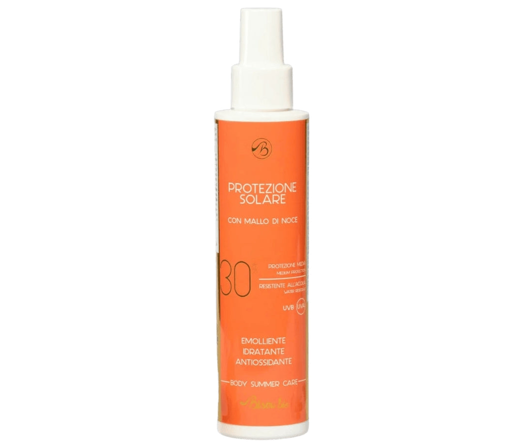 La Protezione Solare con Mallo di Noce SPF 30 di BisouBio è un latte solare ad ampio spettro, indicato per la pelle del corpo soggetta a intolleranze ai raggi UVB e UVA. Formulato per offrire una protezione media (SPF 30), è ideale per pelli già colorite o meno soggette a scottature, garantendo una barriera efficace contro i danni del sole, senza compromettere la traspirazione cutanea.