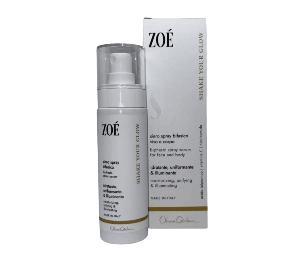 Shake Your Glow - Siero bifasico illuminante viso spray di Zoè Cosmetics è il trattamento quotidiano ideale per ottenere una pelle luminosa, idratata e compatta con un solo gesto. Grazie alla sua formula bifasica in spray, si assorbe rapidamente senza ungere, donando un effetto glow immediato, perfetto anche sopra il makeup.