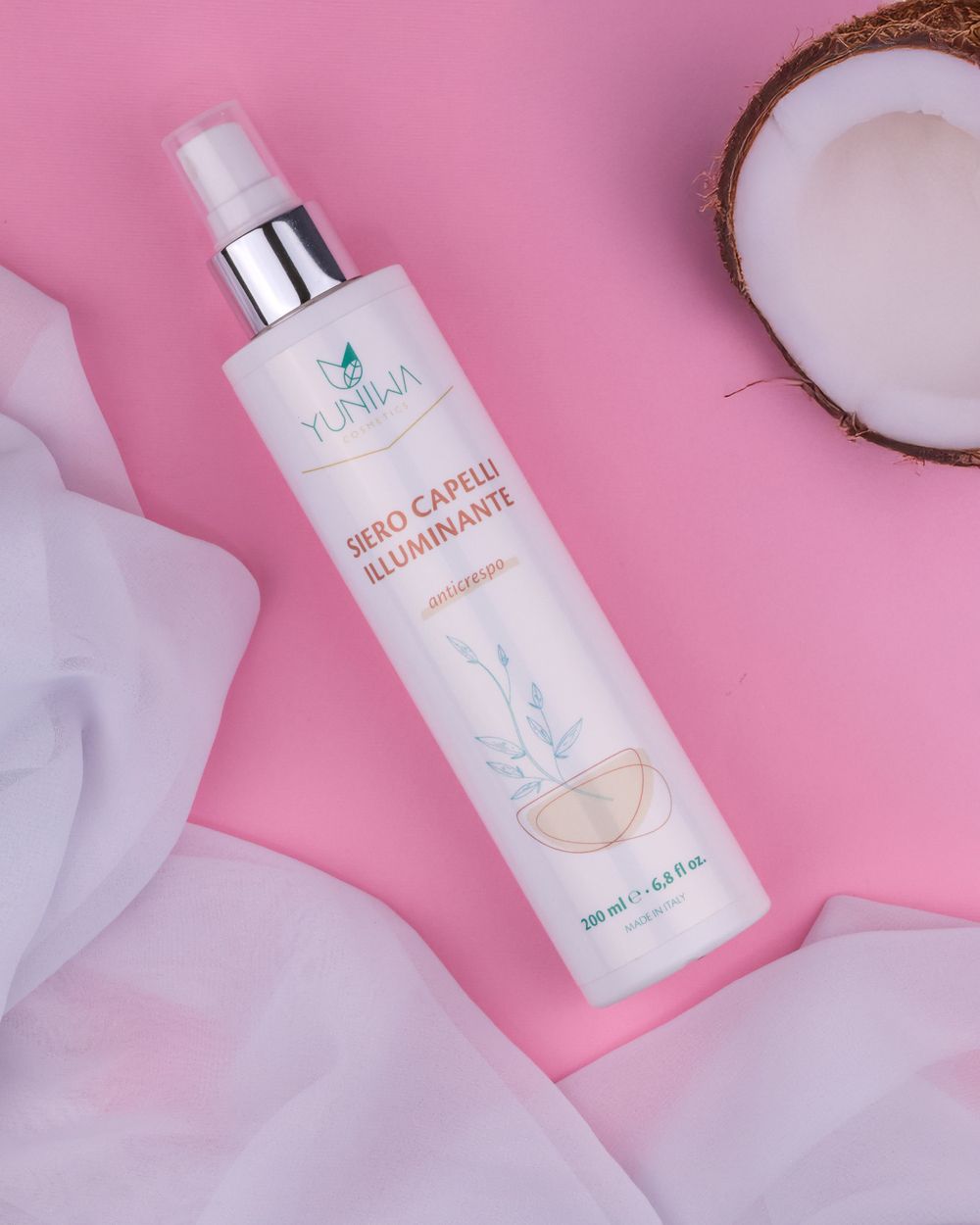 Il Siero Capelli Illuminante Yuniwa Cosmetics è un trattamento leave-in leggero e performante, pensato per domare i capelli crespi, esaltare la luminosità naturale della chioma e migliorare la pettinabilità, senza ungere né appesantire. Ideale per tutte le tipologie di capelli – lisci, mossi, ricci, secchi o trattati – regala morbidezza immediata, azione anti-statico e una finitura setosa e brillante.